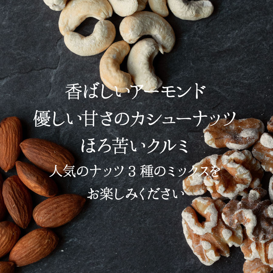 厳選した上質なアーモンド、カシューナッツ、クルミに伊豆大島の海塩とカナダ産有機メープルシロップをまとわせ、一粒一粒、丁寧に焼き上げました。